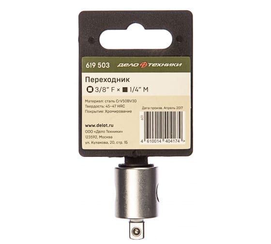Переходник Дело Техники 619503 используется в комплекте с различными вставками. Приспособление необходимо в случае, когда торцевая головка или другая подобная оснастка отличается от посадочного профиля и размера инструмента. Переход с 3/8"(F) на 1/4"(M).